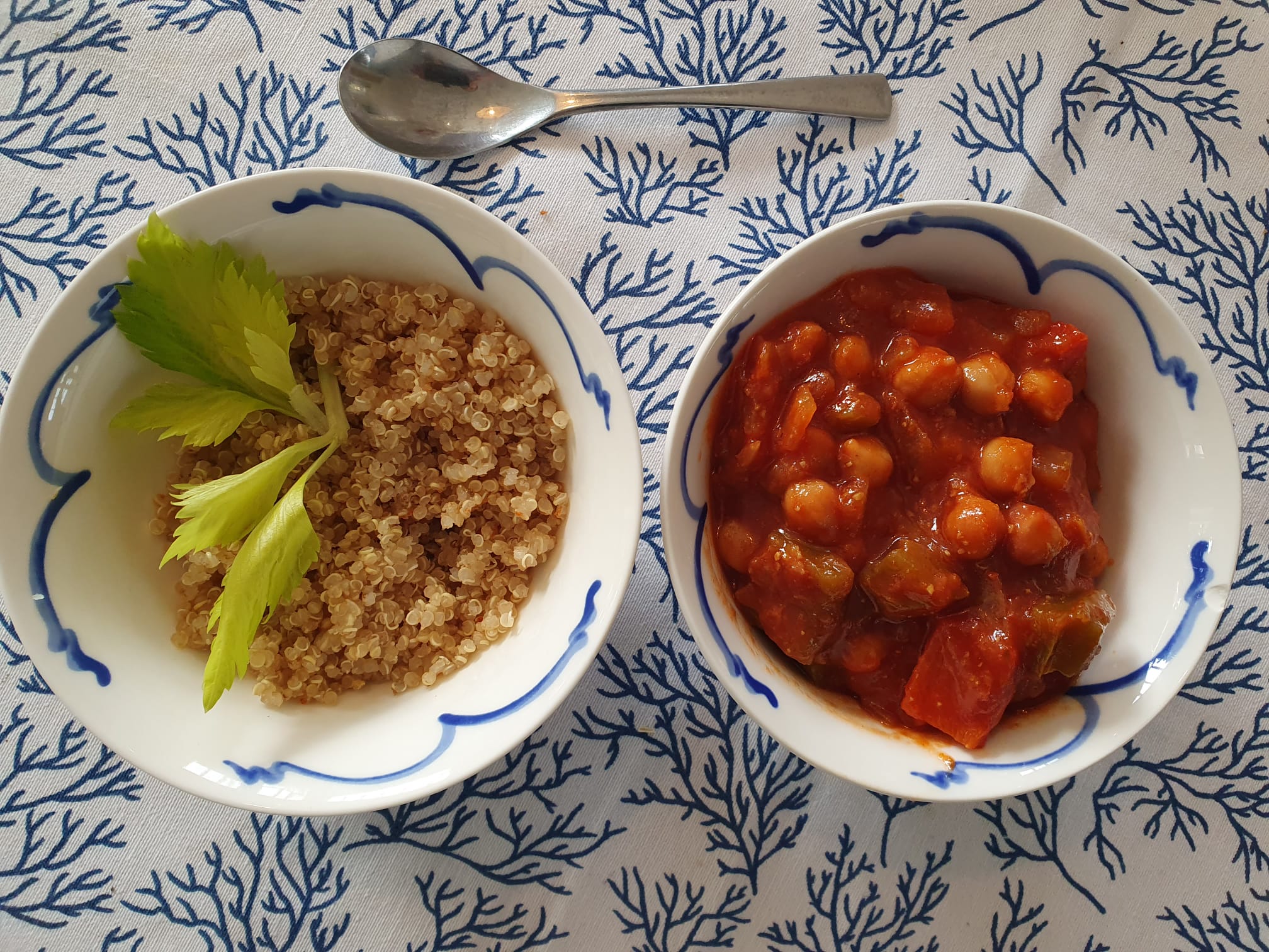 My mother used to cook this in the 1980s, long before vegan eating was a thing. I still love it and it’s so warming on a dark winters evening. It also works well with red kidney beans, white haricot beans or butter beans. I like to have this with quinoa for an extra protein kick but brown rice would also be OK.